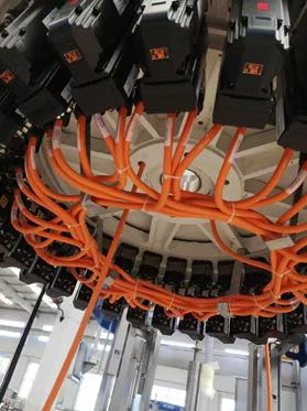 為了讓每個托盤都可以適應于各種瓶型,托盤均采用伺服電機進行角度和位置的調整-在機器上,多達30個甚至60個伺服系統來進行定位控制。由于機器空間緊湊,因此,采用了貝加萊的“背包電機”—它將伺服驅動器和電機集成于一體的ACOPOSmotor,它體積小,且支持多圈絕對值編碼器,記憶多圈位置。