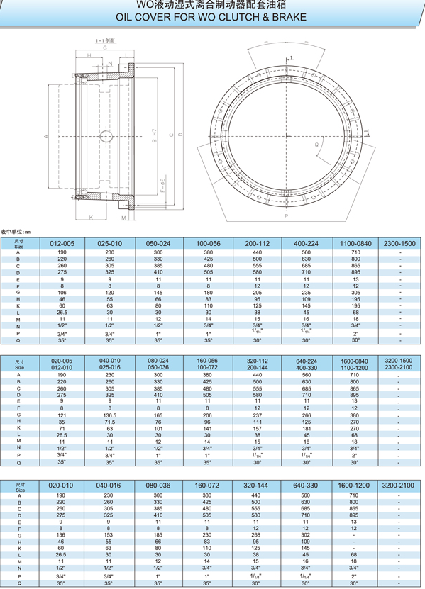 WO系列是一種組合式離合器 制動裝置,采用燒結青銅摩擦材料油驅動。它通常用于接合和制動任何工業機器(偏心壓力機、關節壓力機、金屬沖壓、封邊機、沖床、深沖壓力機、機械剪切機、熱鍛等)。它是要求高性能和最大可靠性的機器的理想產品。液壓離合器工作原理是通過軸和離合器輪轂的油壓使活塞脫開制動器摩擦盤,直到與離合器摩擦盤接觸,離合器嚙合。該系列配備了燒結圓盤,由于其巨大的散熱能力